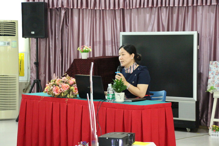 彭金姝園長為家長們介紹幼兒園的辦學理念和課程實施