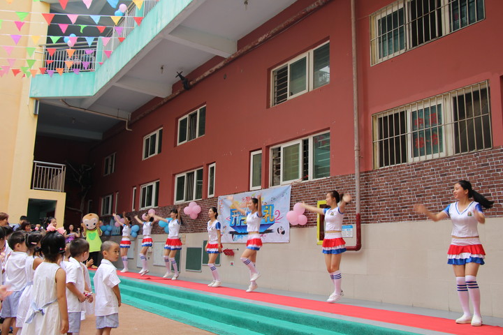 在老師們熱情活力的舞蹈下我們的開學典禮拉開帷幕!