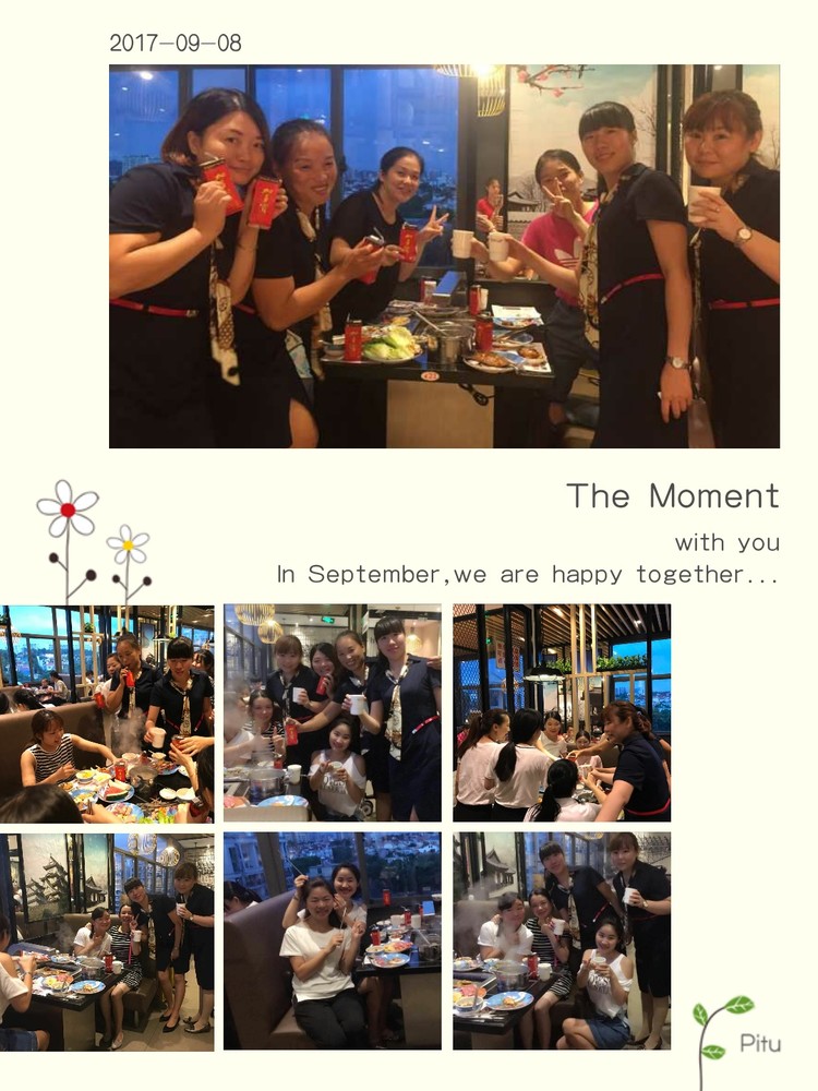 圍繞著集團 “有愿景、重文化、懂浪漫”教師團隊建設目標,對所有教職工默默耕耘表示感謝,我園全體教職工一起進行了別致溫馨的聚餐活動,美味的佳肴,琳瑯滿目的菜品,聲聲的祝福,教師節真快樂!