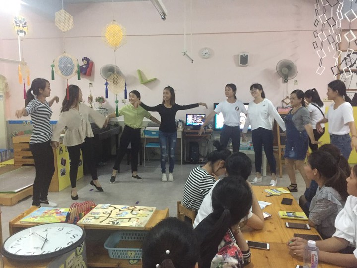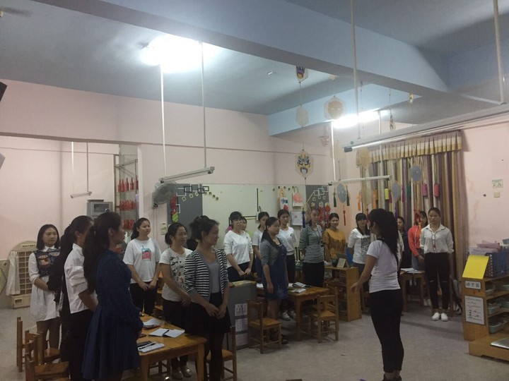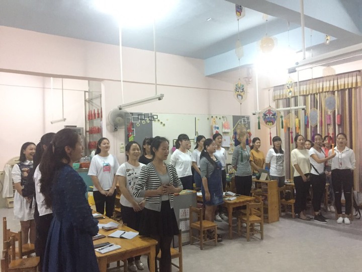 當然教研中也還是會發現很多教師在進行音樂教學時,方法過于保守,缺乏創新能力,或者對于新穎的教學方法信心不足、理解不透歌曲想要表達的具體內容。在歌唱教學中發現教師會陷入了一個固定的教學模式,教歌詞——學節奏——跟唱,而且每次在歌唱教學的時候老師是最累的,以老師的范唱為主;小朋友的學習方式也比較被動,唱到后面都不太感興趣了,而且怎樣去引導孩子聲音的控制。有的孩子唱歌的時候聲音特別大,臉都紅了,這很傷害他的嗓子,遇到這樣的問題作為老師只有口頭的說,但還有沒有別的比較好的方法?在歌唱教學中幼兒需不需要一些歌唱的技能技巧?針對這一現象我們的教研活動現場進行了研討,相關內容給出了解決的方法。再運用鋼琴練習專業的發聲方法,實踐中去引導老師正確的練聲、氣息的運用、發聲的正確位置、如何保護好嗓子、音準等,練習中對老師們進行專業的輔導,集體練聲時檢查老師們的發聲技巧,解決老師們聲樂中存在的困惑,讓老師理解后再去引導幼兒發出好聽的聲音,保護好嗓子。讓大家學會貼近幼兒認知去教授、如何處理在歌唱教學中的重難點、正確的發聲方法、基本的音準練習,認真的上好每一堂音樂課。教研出更好的方式方法讓幼兒更加喜愛我們的音樂,體會音樂所帶給我們的共同快樂。