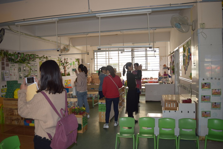 首先公明二幼李晶園長對來訪的園長及老師們介紹了幼兒園的創辦理念、園本課程,分享了幼兒園室內外環境創設的經驗,重點突出班級晨談墻、植物角、音樂區以及戶外游戲場的創設,隨后,觀摩的園長老師們也走進了班級,用手機拍下晨談墻環境、區域的操作材料、主題墻的創設、幼兒表征作品、廢舊物品的再次利用……園長老師們對二幼環境給予了充分的肯定,同時我們也會對反饋表中提出的建議認真思考,結合幼兒園的實際情況加以改善。