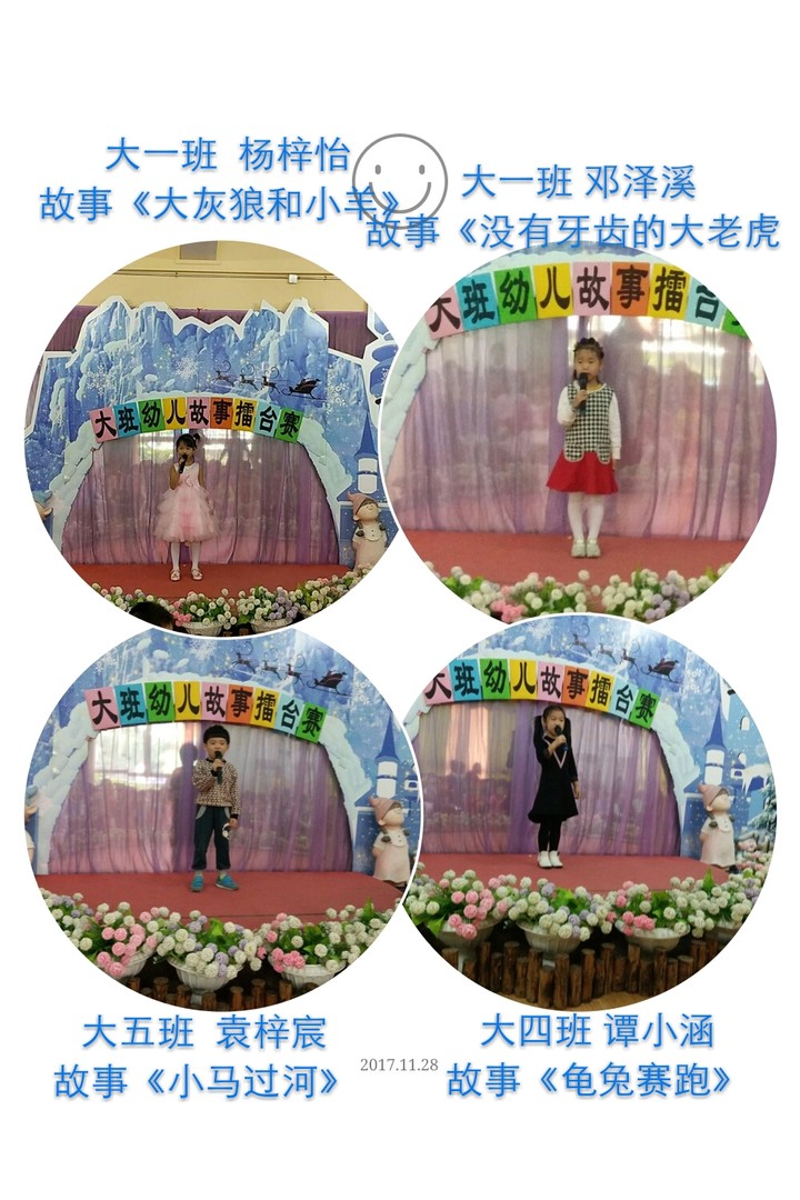 2017年11月29日上午,公明第二幼兒園根據閱讀月舉行了《大班幼兒故事演講比賽》,為幼兒營造一個學說話、敢說話、會說話、勇于表達的語言氛圍,為幼兒提供一個展現自我的舞臺,提高幼兒的綜合素質。使幼兒的語言表達能力、口語發展能力得到進一步提高,鍛煉、豐富幼兒的詞匯、句子,有利于幼兒綜合素質的健全與發展,更重要的是鍛煉幼兒的膽量,培養幼兒自信與勇氣。