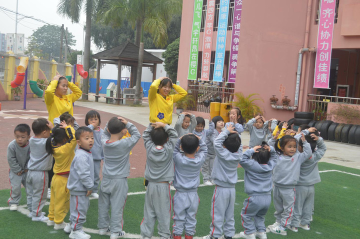 在整個活動中老師們能夠至始至終以飽滿的精神感染幼兒,清晰的口令、規范的動作無不給以幼兒鼓舞和信心,如:發型到位,氣質高貴,我們吶喊中班萬歲;中班老師的親切、自然的情緒感染了幼兒們,使幼兒積極投入到早操的活動當中。同時各班教師還能在活動前將幼兒衣、褲、鞋等不便活動的因素給予排除,讓幼兒輕便活動、特別是幼兒整齊的著裝,這更能展示出幼兒精神抖擻,爭取獲勝的信心,從而有效地激發了幼兒參與活動的興趣。老師和孩子們都樂在其中。