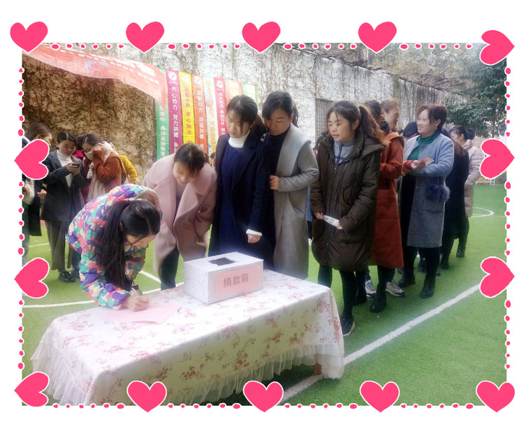 時間: 2017-12-20 作者:yuanhengjia 閱讀次數: 2529生命如此可貴,人生僅此一次。癌癥,對于我們來說,或許很遙遠,當你過著健康的生活,享受生命樂趣的時候,你可曾想過一個生命正在與病魔做殊死搏斗?無情的病魔正在改變著她的生活,這位老師是遠恒佳的一員!在工作期間,她任勞任怨,勤于奉獻,熱愛工作,熱愛孩子。于2017年12月19日早晨晨會上,溪山幼兒園全體教師為該老師進行愛心捐款。愿我們的愛心能匯聚成愛的火焰,陪伴她一起抗戰病魔,迎接希望的明天,衷心地為老師祝福,祈禱早日康復!