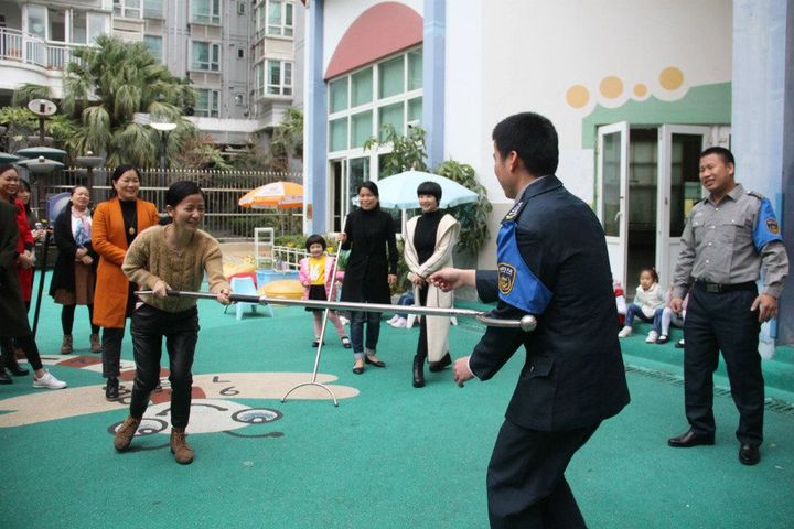 門衛是幼兒園的第一道防線,他們熟悉每一個老師和孩子,對陌生人的進入保持警惕。在演習之前,安保鐘健峰叔叔給大家進行培訓,幫助老師了解演習的意義、教師保護孩子、保護自己的方法。