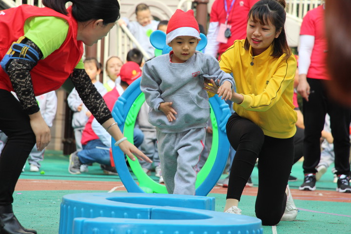 小班級組的老師根據(jù)自己年級組幼兒的年齡發(fā)展特點,以不同的形式進行三項體育游戲,幼兒與家長參與的積極性與熱情一度高漲,盡顯“友誼第一、競賽第二”的精神。