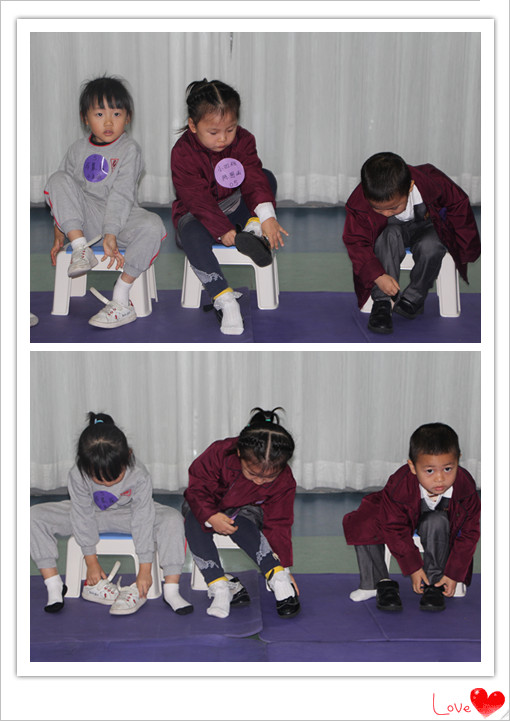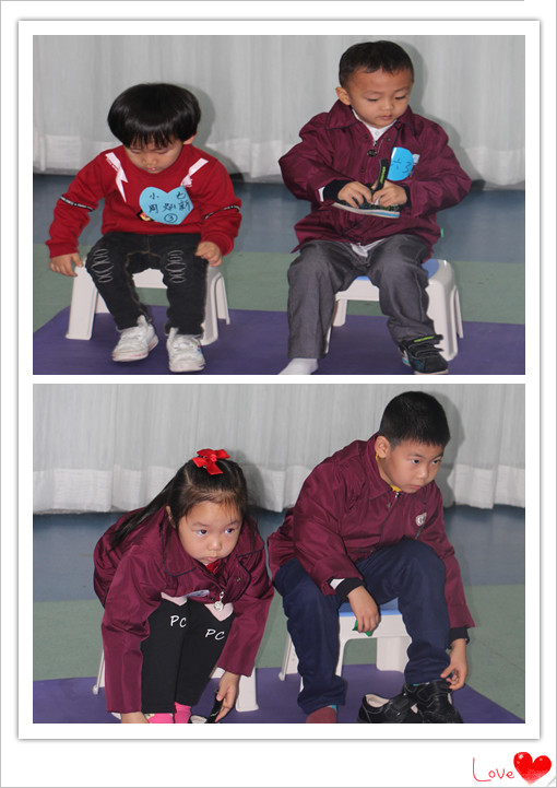 再把鞋子穿好,看看誰做的最標準呢?