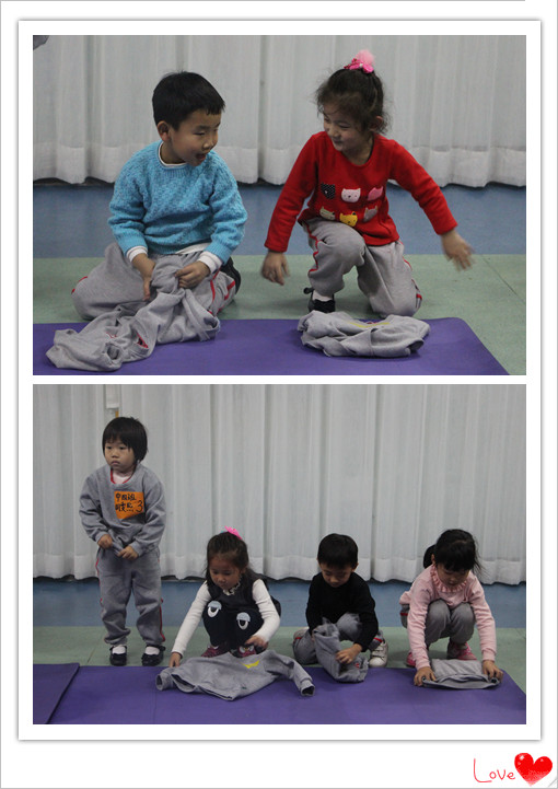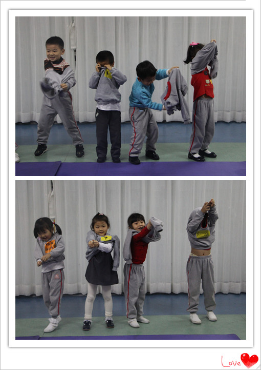 大班進行的是穿脫帶拉鏈的外套哦!