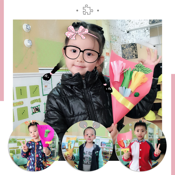 “祝我們的女神麻麻節(jié)日快樂!”這應該是寶貝們期待今天最想說的話了。活動開始后,因為是要送給媽媽的禮物,所以大家非常認真,從剪紙、粘貼到最后老師幫忙裝飾,每個細節(jié)都小心翼翼,生怕做出不完美的作品。一張張笑靨如花的孩子們手捧親手制作的花,將愛盡情地展現(xiàn)出來,即使只是一個拍照時的小動作,也會帶給我們快樂,讓這無憂無慮的小時代在延續(xù)著。