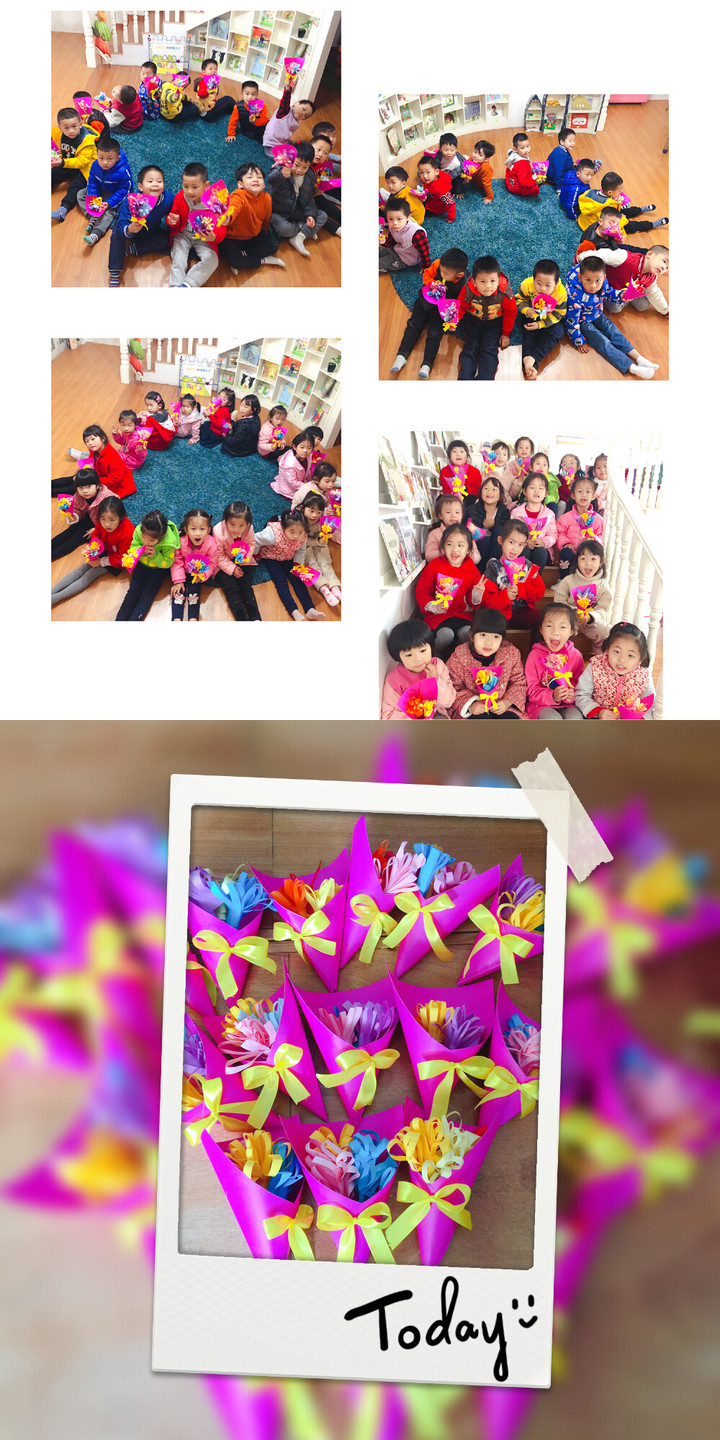 即便是這群剛剛適應幼兒園生活不久的小班寶貝,也帶著滿滿的愛意用心制作出這五彩繽紛的花朵送給媽媽。你們的可愛、你們的童真、你們的溫暖感染著每一個人。