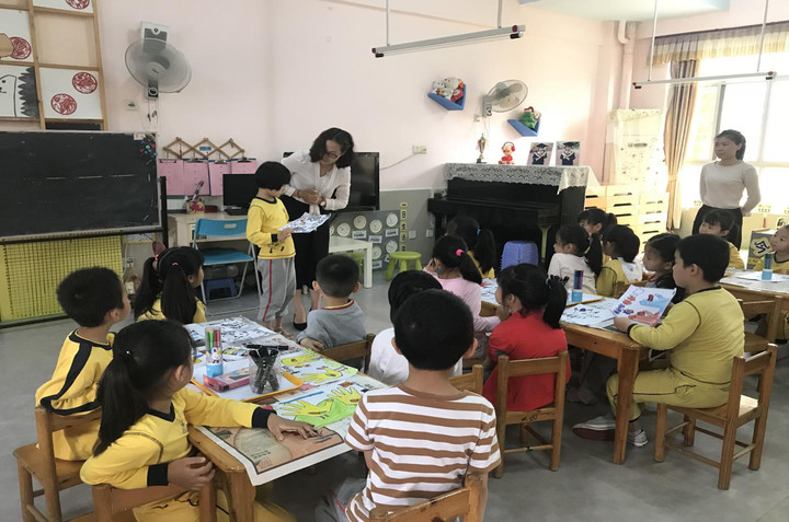 美術活動過程中,園長媽媽也忍不住要跟小朋友們一起分享自己的發現