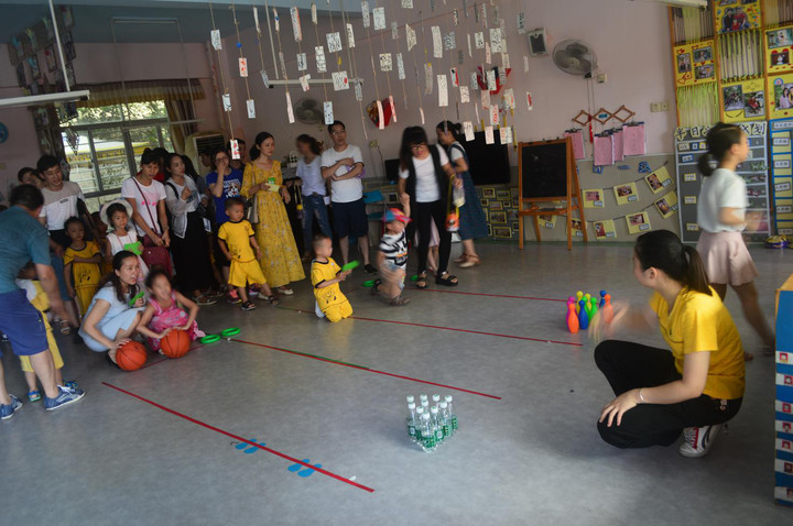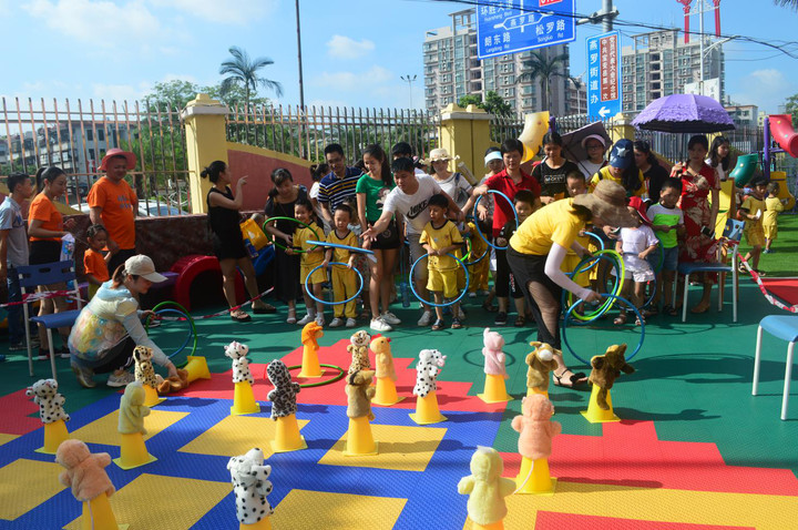 此次“親子游園活動(dòng)”豐富多彩、熱鬧非凡,家長(zhǎng)以串班的形式帶領(lǐng)孩子們進(jìn)行了有趣的游園活動(dòng),幼兒園內(nèi)到處可見(jiàn)孩子們開(kāi)心的笑臉、活潑的身影。此次游園活動(dòng)融知識(shí)性、科學(xué)性、趣味性為一體,包括了“足球”、“高爾夫”、“小貓釣魚(yú)”、“ 母雞下蛋”、“兩小無(wú)猜”、“幸運(yùn)大轉(zhuǎn)盤(pán)”、“紙上彈珠”、“扔骰子”、“吹蠟燭”等形式多樣的22個(gè)游戲。活動(dòng)期間,小朋友們各自拿著活動(dòng)所得的獎(jiǎng)品,充分享受著節(jié)日的快樂(lè)與幸福!豐富的游園活動(dòng),讓父母和寶貝們?cè)诒荣愔懈惺芑顒?dòng)的激烈,在合作中感受活動(dòng)的快樂(lè),在頒獎(jiǎng)中感受活動(dòng)的榮耀。一張張陽(yáng)光燦爛的笑臉,一陣陣清脆爽朗的笑聲,歡樂(lè)就在我們身邊。