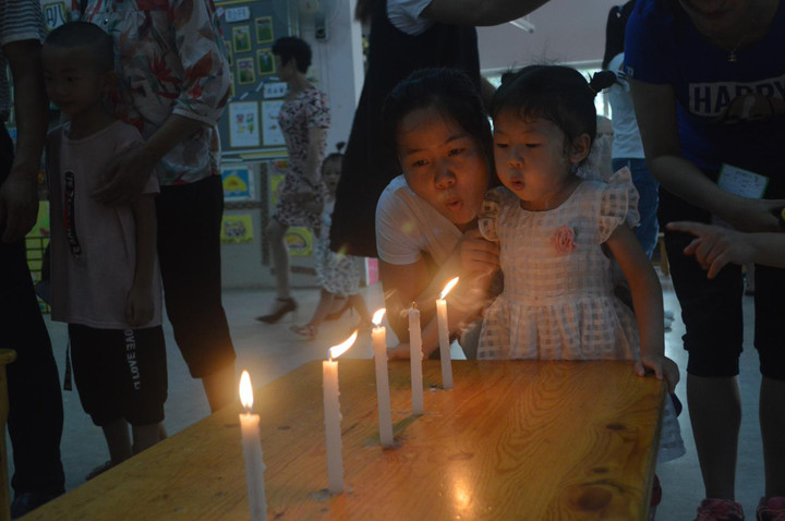 吹蠟燭——媽媽,我們?cè)S個(gè)愿望吧!