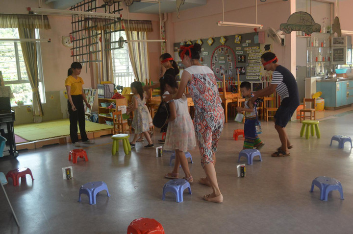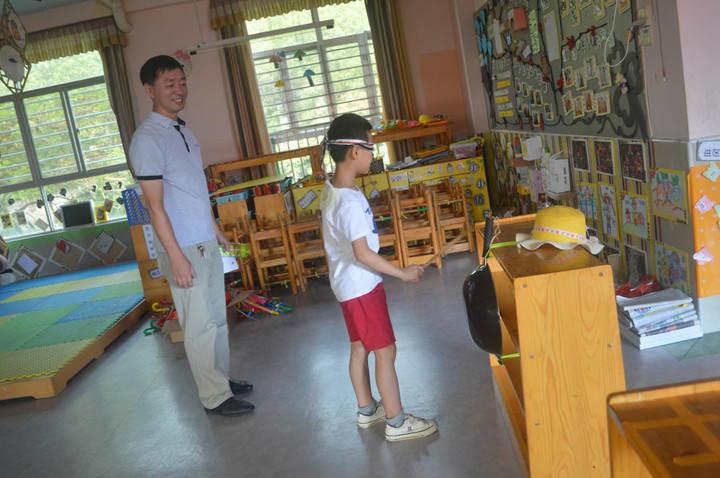 蒙眼敲鑼——爸爸你是我的導(dǎo)航哦!