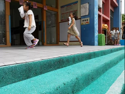 從教室撤離出來,老師在清點本班級幼兒人數是否全部撤離到安全地點。