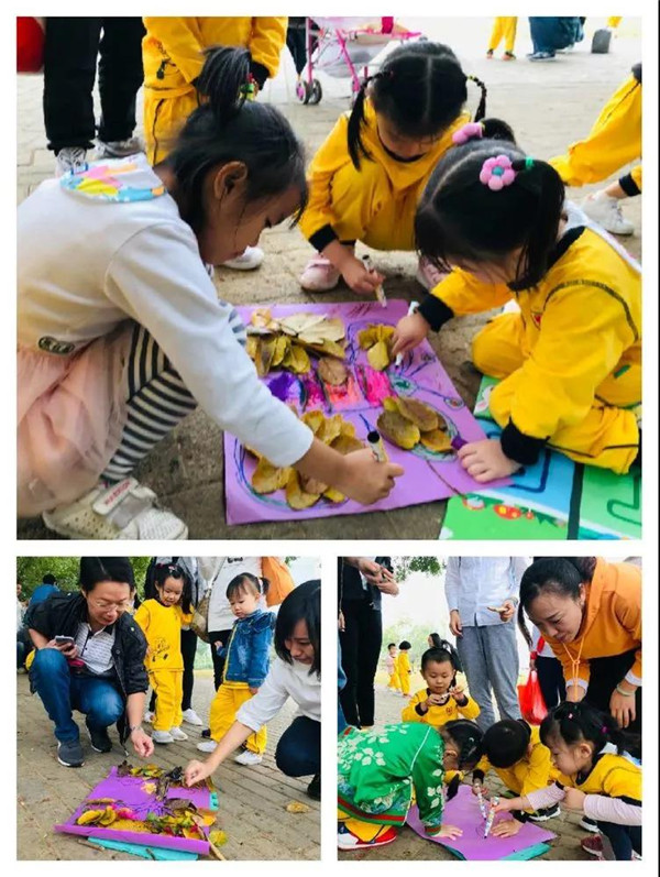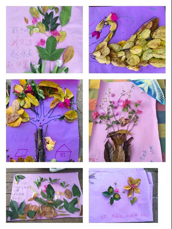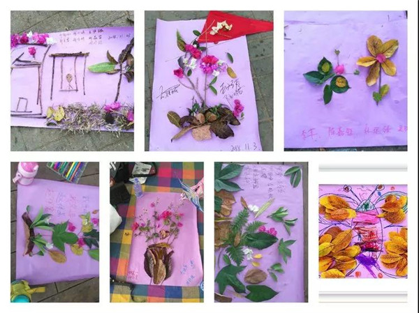 第二個環節是以大自然為主題,按小組為單位撿自然材料與爸爸媽媽共同完成一幅作品,比比誰的最好看!