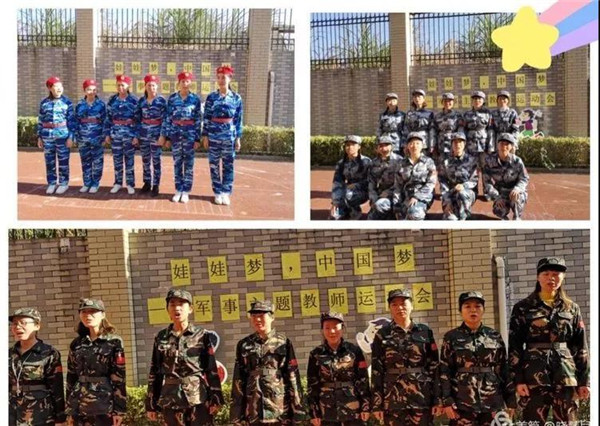 看看我們活潑可愛的老師們穿上了帥氣的軍裝也是一道新的風景線呢!
