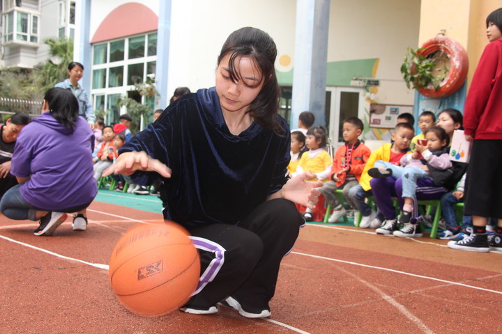 (伴隨著此起彼伏的拍球聲,每個人都全身心投入力爭第一。)