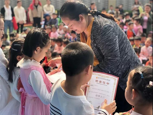 通過(guò)激烈的比賽,小朋友們都收獲了優(yōu)秀證書(shū),園長(zhǎng)媽媽為小朋友們頒發(fā)“故事大王”獎(jiǎng)狀。