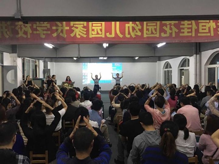 家長們在老師的帶動下,興致勃勃的做了一次小朋友。律動讓現場緊張的氣氛頓時變得輕松起來。