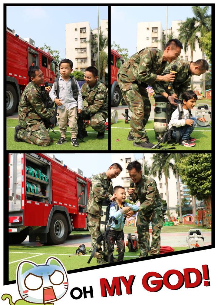 緊接著,消防員叔叔向幼兒介紹了各種不同的消防器械:滅火戰斗服、滅火器、金屬切割機、消防水槍、水袋、空氣清新劑等及一一介紹了各種不同消防器械的用途與使用方法等。在這炎熱的天氣下,也無法阻擋孩子們與消防員叔叔認真學習的精神,讓我們的孩子對消防安全知識又得到了很大的收獲。