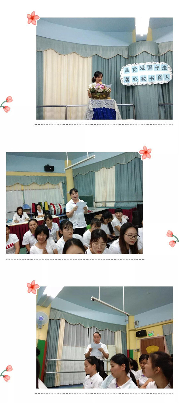 教師是太陽底下最光輝的職業,是人類靈魂的工程師,是社會的規范、是人類的楷模。而作為一名幼兒教師這個神圣而又偉大的職業,更是需要樹立以德育人、愛國守法的良好師德師風,為此碧水龍庭幼兒園于2019年10月28日晚上開展了“自覺愛國守法,潛心教書育人”的演講比賽活動。現在就讓我們跟著主持人一起去聆聽那美好的故事吧!