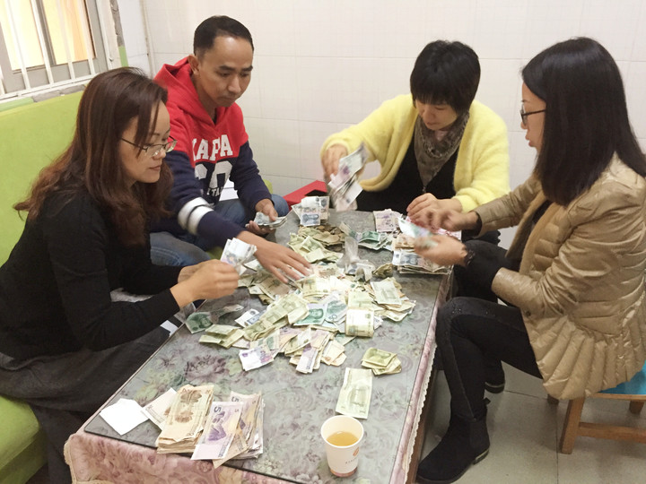 家長代表、黃主任和財務一起清點捐款數額及轉帳