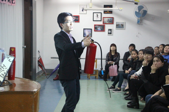王曉主任在示范滅火器的使用方法