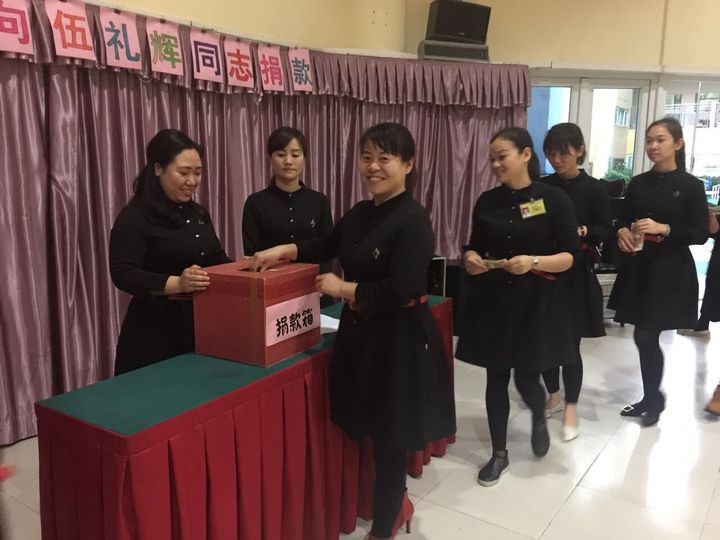 武禮輝是一位在平凡的工作崗位上默默奉獻的校衛隊員,當得知他身患重疾,在與病魔頑強抗爭時,興茂幼兒園特舉行了這次愛心捐款活動。于當天共計捐款1460元,并已由工會主席王麗莉和團支書史華艷老師轉交?;蛟S這點捐款數額微不足道,但它代表了興茂全體教職工的愛心。祝愿武禮輝同志能夠勇戰病魔,早日康復!