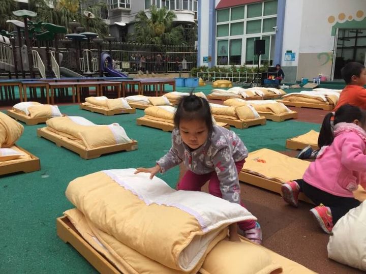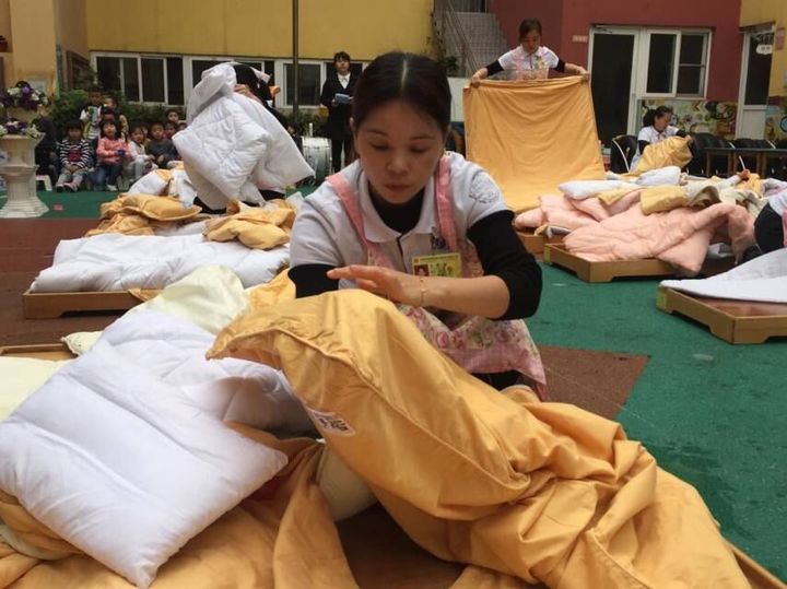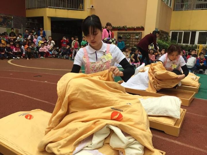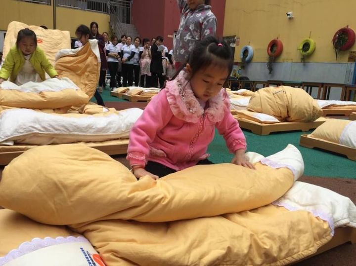 同時還有一幫自告奮勇的小選手,他們也希望在此比賽中一展身手(疊被子),為我們的保育老師助威吶喊。