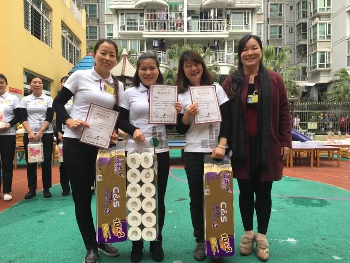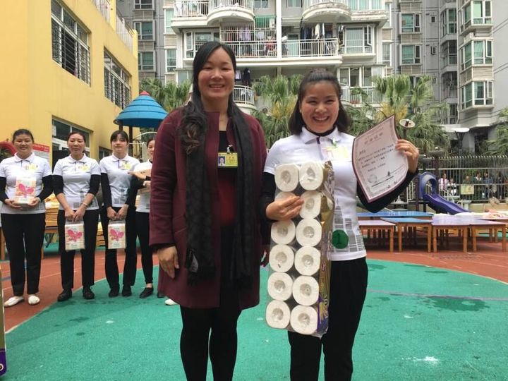 在比賽的過程中,保育老師個個用她們嫻熟的操作技能,發(fā)揮出了自己高超的專業(yè)能力,亮出了她們平凡工作中的不凡之處,贏得了陣陣歡呼聲,園長在為每個獲獎的選手們頒發(fā)獎狀。