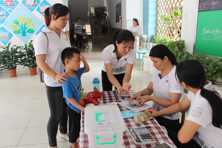 由家委和幼兒園財(cái)務(wù)一起清點(diǎn)各班義賣的善款并匯入紅十字會(huì)愛(ài)心賬戶。