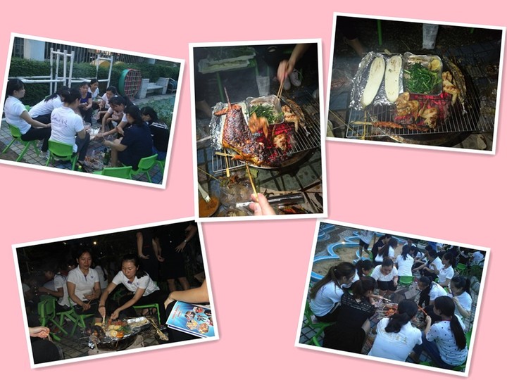 夢想是石,敲出星星之火;夢想是火,點燃熄滅的燈;夢想是燈,照亮夜行的路,夢想是路,引你走向黎明。夢想,是我們飛翔的翅膀,伴隨我們開始踏上新的征程,2017年6月23日遠恒佳花園幼兒園全體教職工歡聚在一樓大操場共同迎來上半年教職工生日會,本次生日會共有25位壽星,在活動中老師們自己動手生火、自己烤食物,雖然燒烤經驗不足常會有烤焦的現象,在活動過程中不時有惋惜的聲音出現“哎呀,我的火腿腸又烤黑了”、“哎呀,我的雞翅著火了”,當然也有一些燒烤高手在旁邊為不會燒烤的老師們服務,讓她們也能享受美食的美味。伴隨著一首《有你真好》壽星們一起手拉手共同歡慶在一起的美好時刻,一起圍成圓圈唱生日歌、許愿,愿所有的壽星們心如所愿。本次自主燒烤生日會活動的舉辦增強團隊的凝聚力,體現以人為本的管理文化,加強與員工的溝通,進一步激發員工的工作熱情,增強員工歸屬感,豐富員工生活。下面讓我們一起回顧這美好的時刻吧!