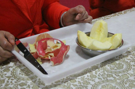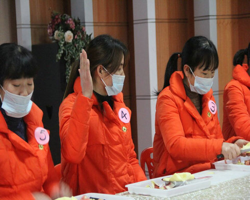 在這一個環節中,老師們做到了:皮兒薄、分塊均勻、擺放藝術。