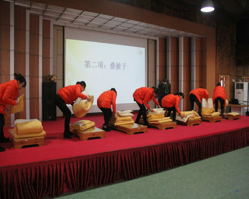 在這一個環節中,保育老師們做到了:速度快、動作規范、擺放美觀!老師們嫻熟的技能獲得評委和同伴的陣陣掌聲。