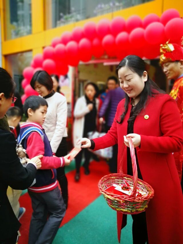辭舊迎新,春回大地,溫馨愉悅的寒假過后,新學期如約而至!瞧,一大清早幼兒園門口可熱鬧了,園長媽媽和財神爺在給大家送祝福發紅包,憨厚可掬的米奇米妮也在向小朋友們打招呼呢,最引人注目的還是那十二只形態各異的狗狗們,家長朋友與孩子們一起在狗狗上許下新年最美好的祝愿!