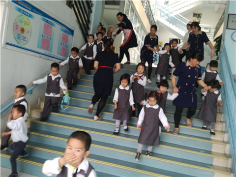 演習活動小結:本次消防演練全包括安全疏散演習、安全教育、安全撤離環節。全園幼兒園302人,教職工40人,在安全疏散演習環節1分30秒撤離到操場;在安全教育環節保安范叔現場示范滅火器的使用方法,并使用滅火器成功撲滅現場火苗;在安全撤離環節各班幼兒沿著消防路線撤離有序。活動不足是在救護被困一名幼兒和一名老師時,救護隊人員反應不夠迅速,我園計劃再次進行類似處理突發事件的演練,以增強老師們的敏感度和反應能力及處理突發事件的應急能力。