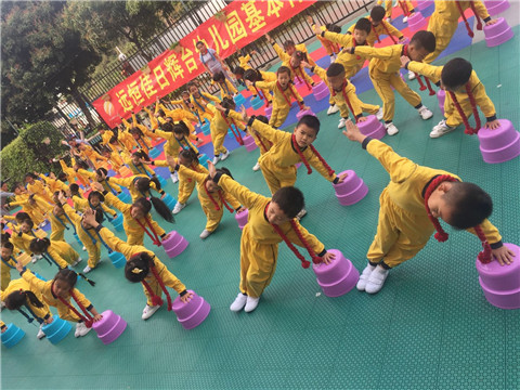 回顧上學期孩子們的實際動作能力發展狀態,本學期在早操編排上我們進行了全新的編排,以“哪吒鬧海”為主題展開編排,借助呼啦圈、溜溜布雙器械的結合進行有效地動作技能訓練,增強體質,同時提高了幼兒對體育活動的積極性。