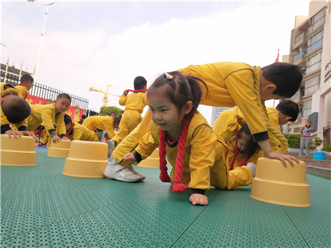 本學期中班組以“小小探險家”為主題,進行早操編排,其動作技能有效地增強體質,鍛煉身體發展的基本動作,同時也提高了幼兒對體育活動的積極性。在上學期的基礎上,增加了操節和體能鍛煉的難度,使體能活動更加有趣,激發幼兒的參與性。