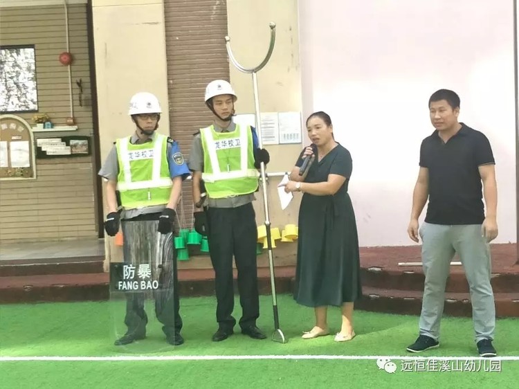 隨著園內(nèi)的警報聲響起,由“家長”扮演的2名“犯罪分子”從幼兒園大門潛入園內(nèi),“帶走”班上一名幼兒,老師迅速報告總指揮,保安快速啟動“一鍵報警”,廣播室第一時間拉響全員警報。聽到信號,全園立即停止活動,各班教師在最短時間內(nèi)組織引導(dǎo)幼兒安全躲避。
