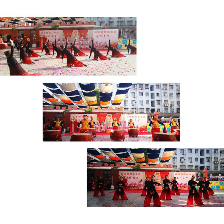 二幼的老師是一道耀眼的光環,美麗又可愛的她們帶來的中國鼓和舞蹈《書簡舞》,正以歡快律動向我們傳遞運動的概念。它濃縮著中國文化精神,顯示著中華民族之魂,是永恒的生命躍動。