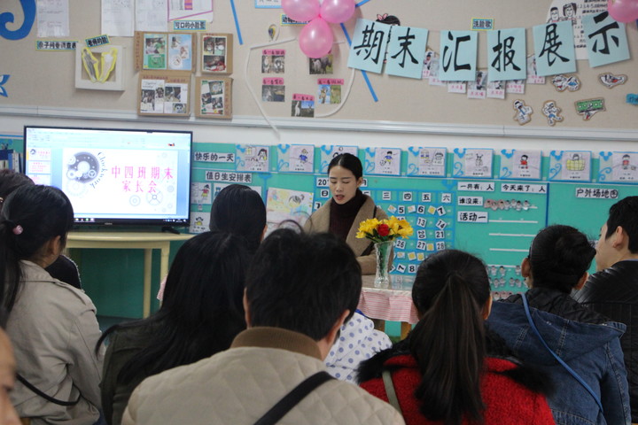 各班級老師正在和家長們匯報本學期的班級各項工作