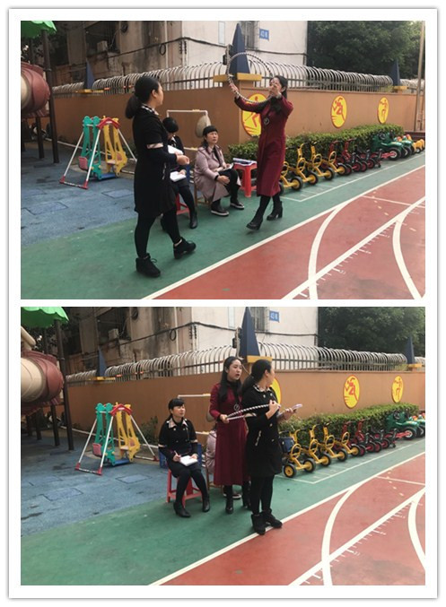 萬老師就大班組呼啦圈操作現(xiàn)場(chǎng)指導(dǎo)