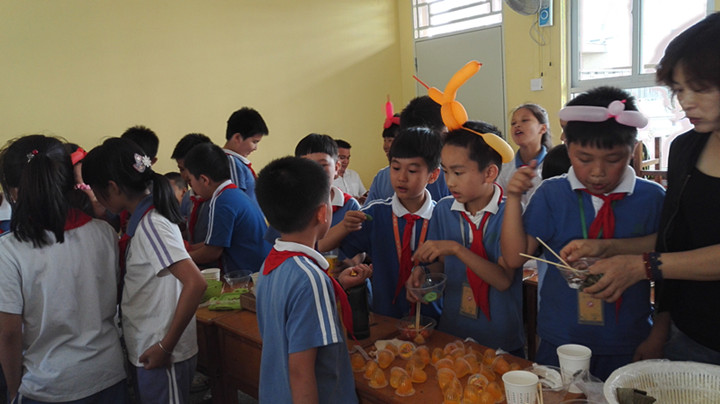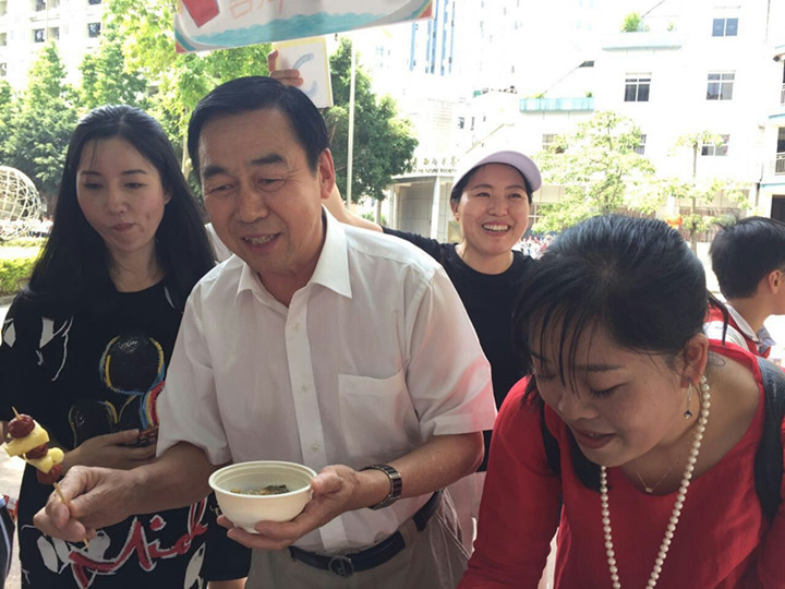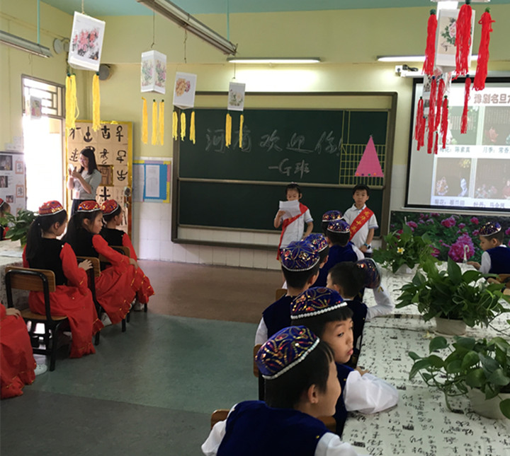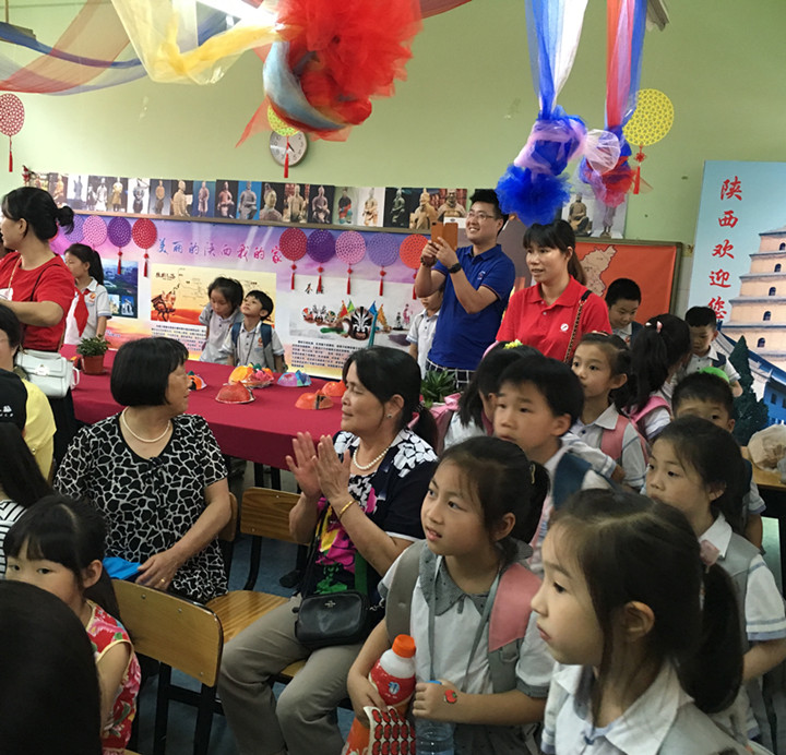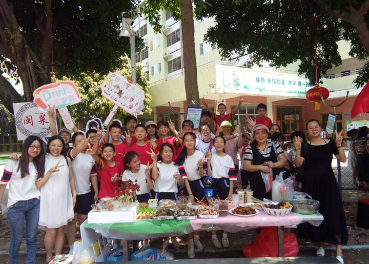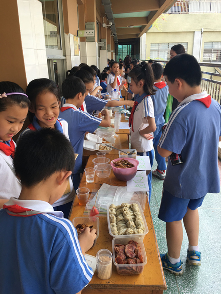 5月27日,適逢“端午”佳節前夕,全校師生、家長也迎來了本屆文化節最吸人眼球、最聚集味蕾的“地域風情游園”與“美食嘉年華活動”。下午, 教室里面,孩子們正為游園的客人們演繹著“陜西皮影戲”、“三國火燒赤壁”、“徽州茶藝箏韻”、“井岡山革命贊歌”等諸多文化曲目。老師們則為孩子們分發著義賣活動的“代金券”,準備到各班攤位競相拍賣美食,以模擬售賣活動來親身體驗中華飲食文化。