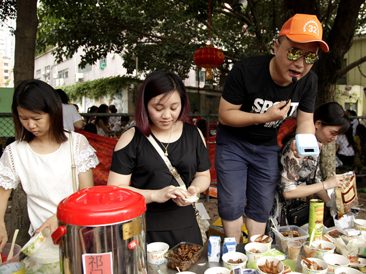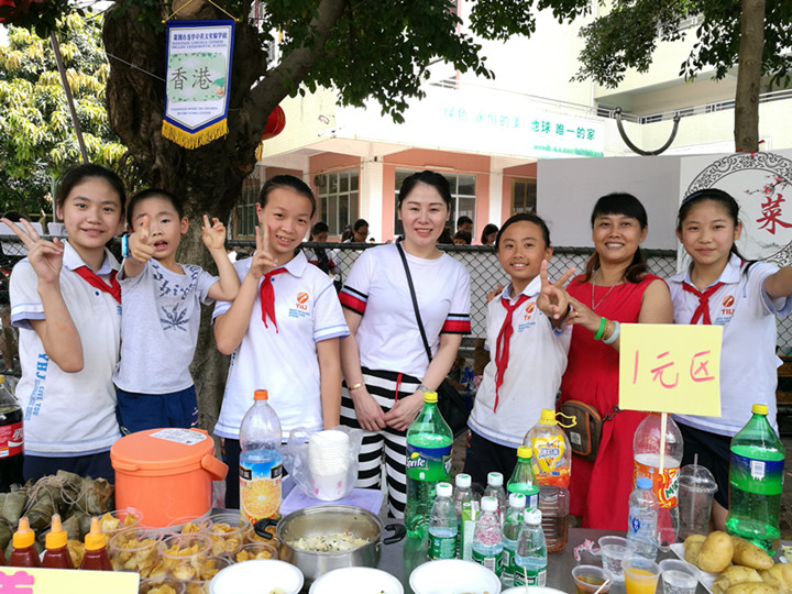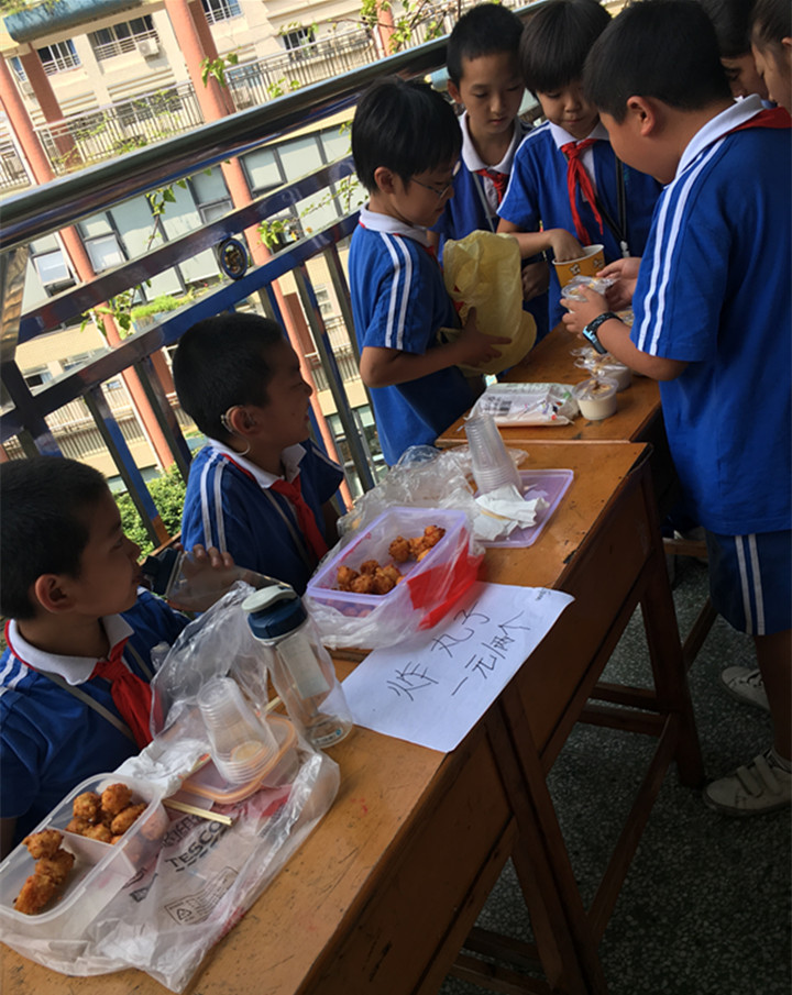 鏡頭移向操場,一場囊括神州大地各色美食的嘉年華活動,在龍華中英文實驗學校的操場上盛情上演。放眼望去,偌大的操場儼然成了一條“美食街”:人來人往,熙熙攘攘。叫賣聲,吆喝聲此起彼伏。各種美食琳瑯滿目,讓人垂涎欲滴。孩子們手握代金券,在這個攤位看看,到那個攤位瞧瞧,熱鬧非凡。