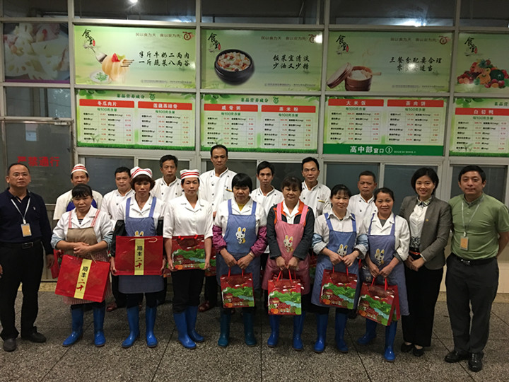 學校上級部門,深圳市遠恒佳教育集團還成立了后勤服務公司,聘用專門的管理及技術人才對全集團(包括龍華中英文實驗學校)進行食堂強化管理、提高食堂服務質量,每月還會對下屬校、園食堂進行評比。我校在集團進行的專業、嚴格的評比中,多次被評為優秀食堂。