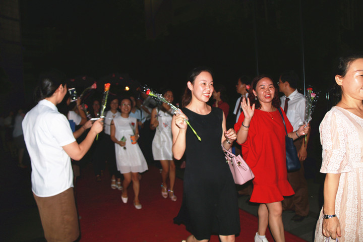 晚會由龍華中英文實驗學校胡化忠、祝啟鳳主任主持,在歡快的《炫酷舞林會》開場節目中拉開序幕,緊接著戴副總代表集團致辭。戴副總在致辭中要大家響應習總書記的號召,做“有理想信念、有道德情操、有扎實學識、有仁愛之心”的“四有好老師”,同時希望大家以集團“美好教師”的標準嚴格要求自己,做“有愿景、重文化、懂浪漫”的遠恒佳人。
