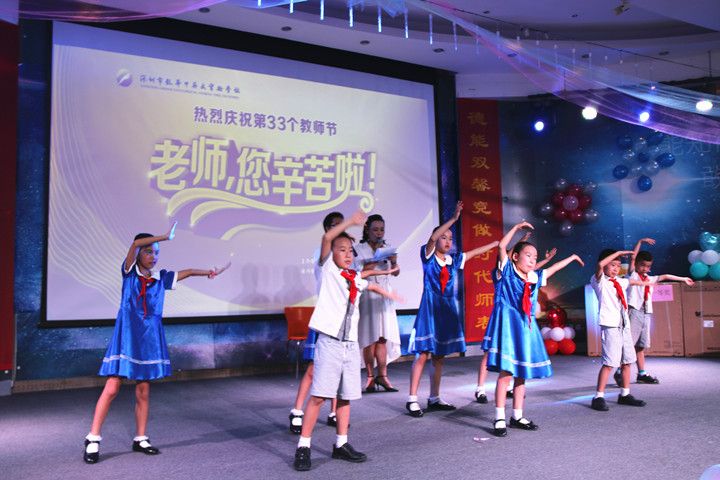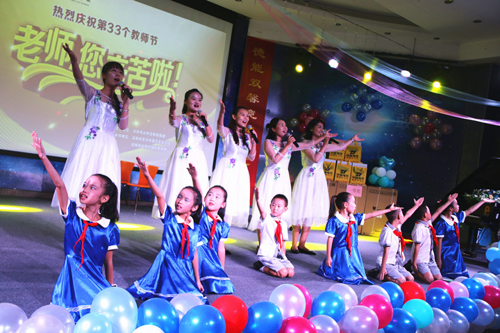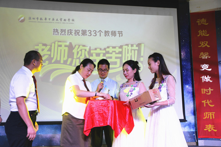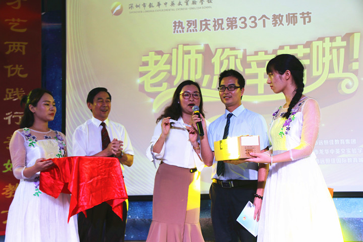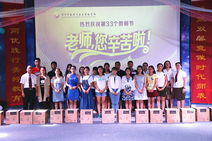 在歡樂而又感動的氛圍中,深圳市龍華中英文實驗學校、遠恒佳國際教育城聯合舉辦的慶祝第33個教師節的活動圓滿結束了,讓我們以“用德能雙馨競做時代師表,練才藝兩優踐行美好教育”作結,祝愿在新學期學校及教育城的各項工作順利開展,在新的學期取得更加優異的成績。同時祝愿全體教職員工身體健康,闔家歡樂,教師節快樂!