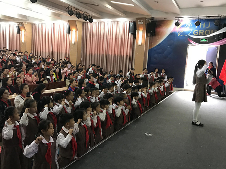 時(shí)間: 2017-12-26 作者:yuanhengjia 閱讀次數(shù): 25212017年12月15日下午,龍華中英文實(shí)驗(yàn)學(xué)校實(shí)驗(yàn)部一年級(jí)學(xué)生在多功能報(bào)告廳舉行了新隊(duì)員入隊(duì)儀式。為迎接這個(gè)神圣的日字子的到來(lái),一年級(jí)進(jìn)行了隊(duì)前教育,各中隊(duì)提前開(kāi)展了“隊(duì)知識(shí)回顧”等系列活動(dòng),學(xué)生們遞交了書(shū)面的入隊(duì)申請(qǐng)書(shū)。
