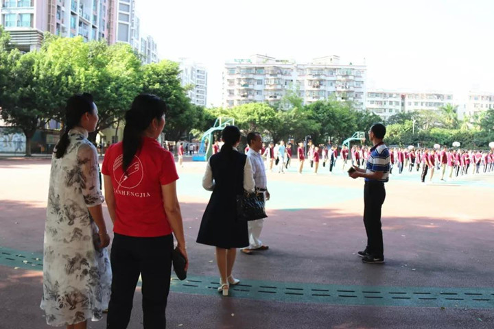包強(qiáng)平責(zé)任督學(xué)、詹雪光督學(xué)觀看學(xué)生陽光體育活動(dòng)